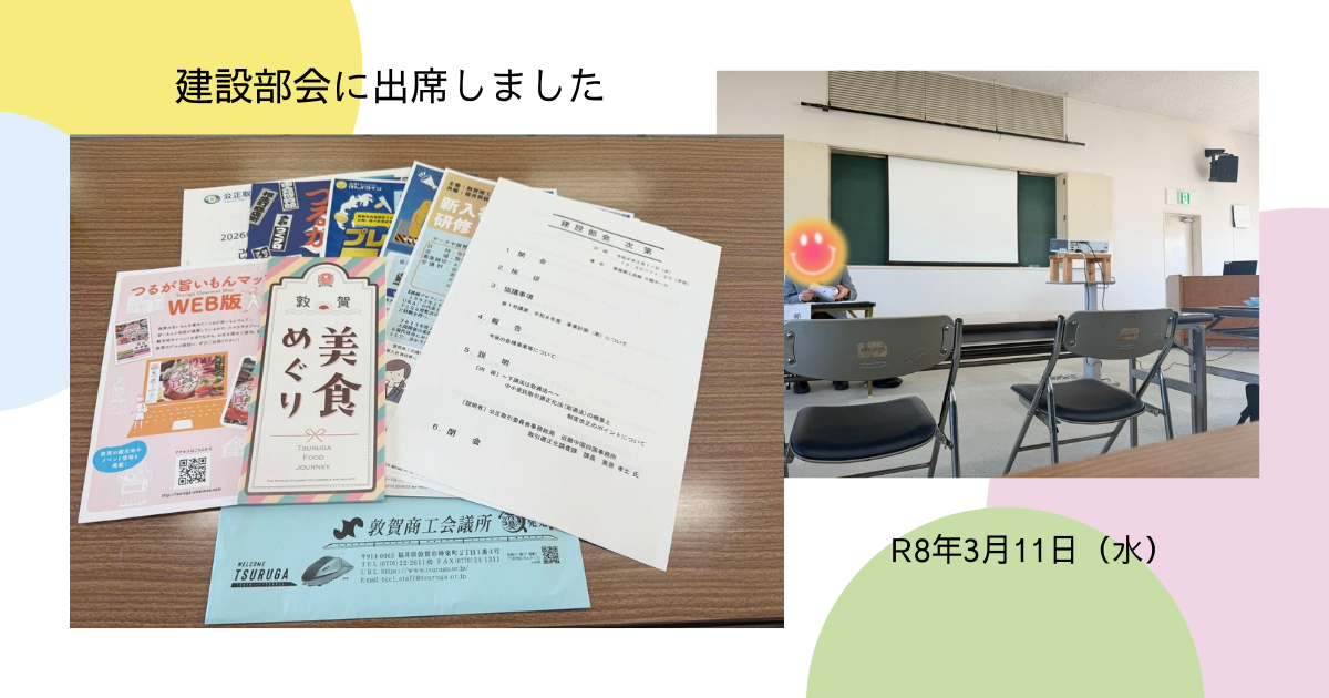 建設部会に出席しました 2026 3/12 その他 2026年3月11日2026年3月12日 建設部会に出席しました。部会では「下請法は取適法へ」をテーマに、中小受託取引適正化法(取適法)の概要や制度改正のポイントについて説明がありました。今後の業務に関わる内容として理解を深める機会となりました。 その他 よかったらシェアしてね! URLをコピーしました! URLをコピーしました! コメント コメントする コメントをキャンセルコメント ※ 名前 ※ メール ※ サイト 次回のコメントで使用するためブラウザーに自分の名前、メールアドレス、サイトを保存する。
